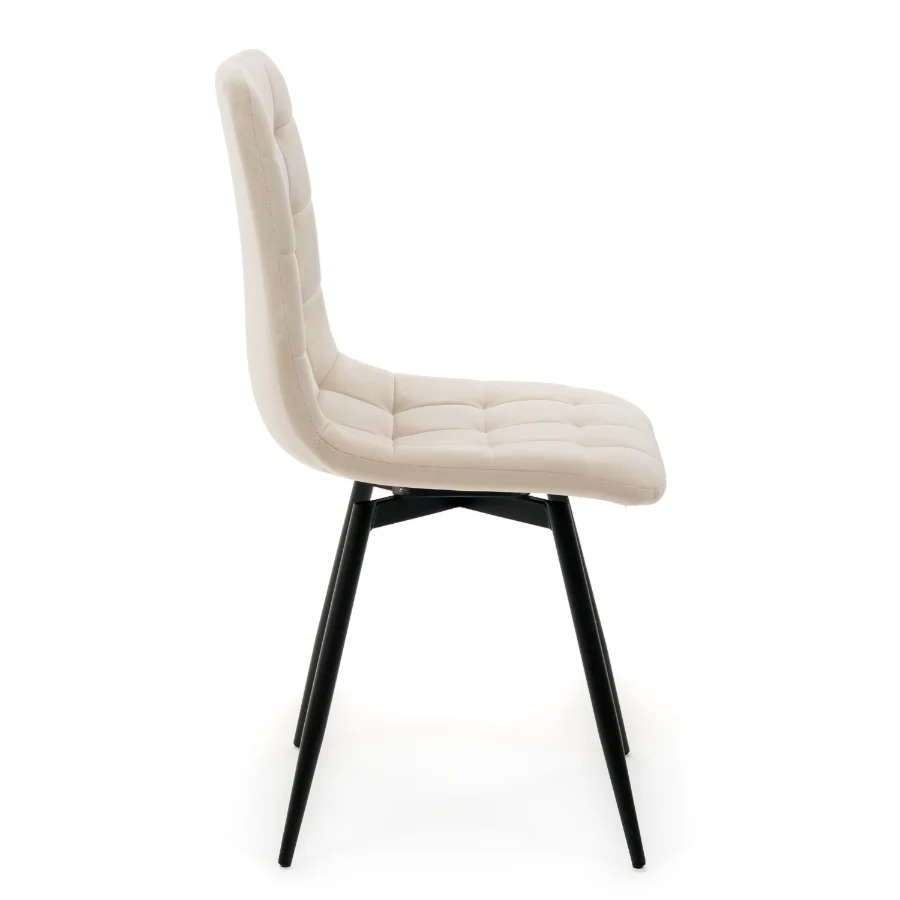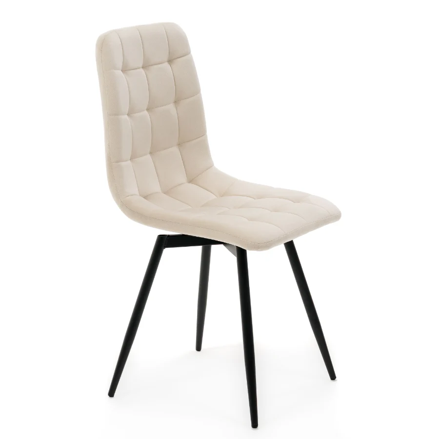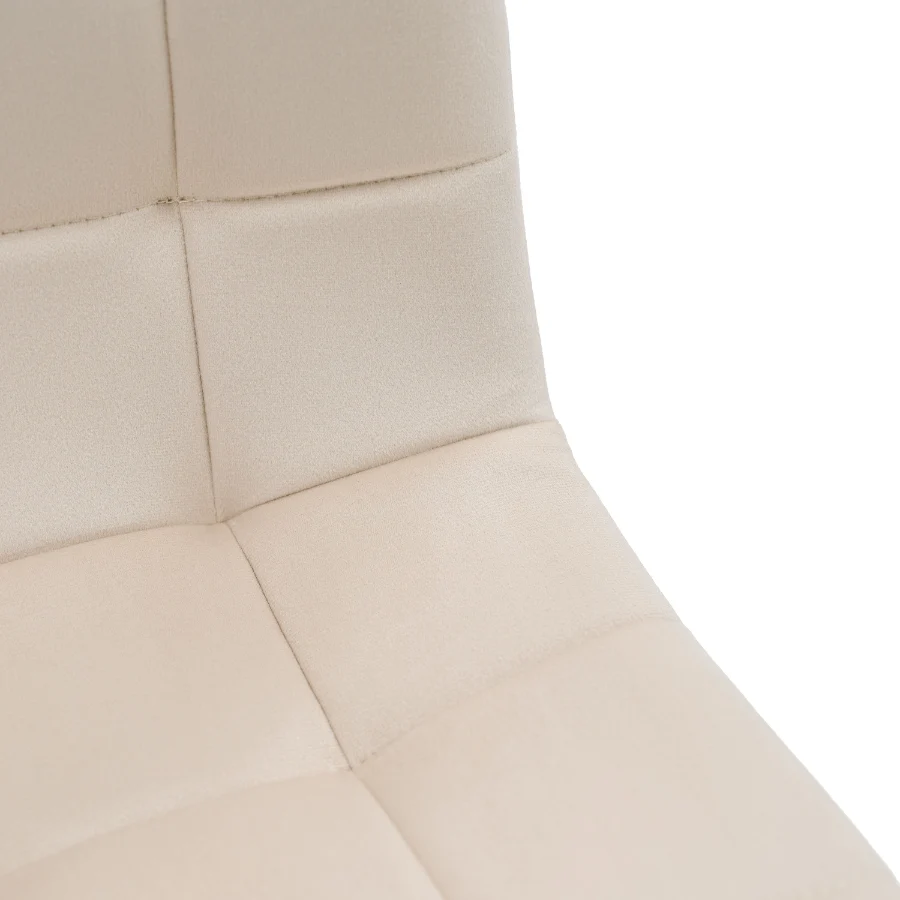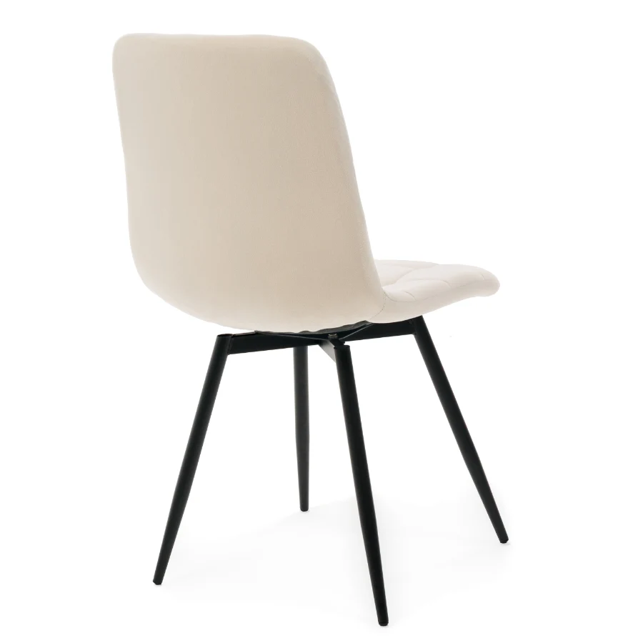 Miękkie siedzisko oraz ergonomicznie wyprofilowane oparcie idealnie dopasowują się do sylwetki, wspierając prawidłową postawę. Pikowane wykończenie nadaje krzesłu elegancki charakter, a przyjemna w dotyku tkanina welurowa zapewnia wysoki komfort nawet podczas dłuższego siedzenia.