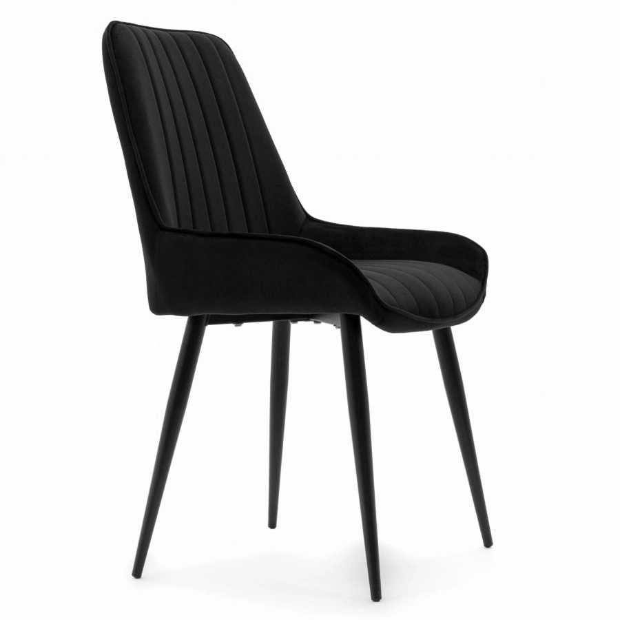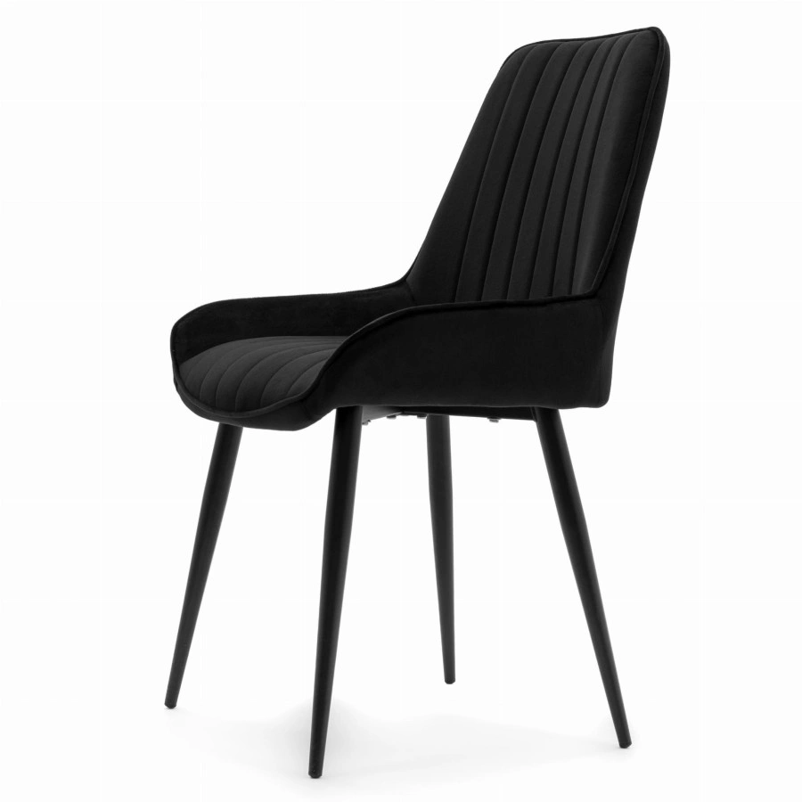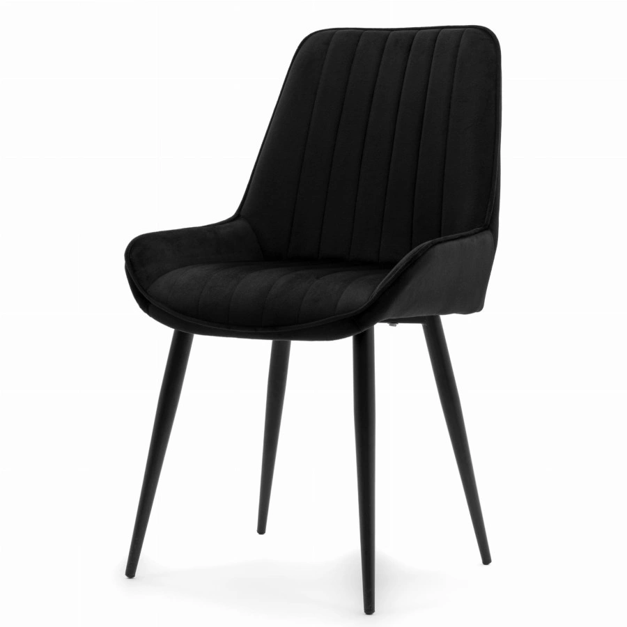 - Stabilność i trwałość: Profilowane, metalowe nogi malowane proszkowo na czarny kolor stanowią solidne podparcie, dzięki czemu krzesło jest stabilne i odporne na uszkodzenia.